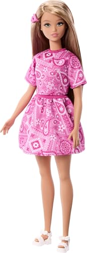 Barbie Fashionistas Style Doll #249 with Blonde Hair, Wearing Pink Paisley Skirt, Pink Paisley Shirt, White Platform Sandals, JJN62