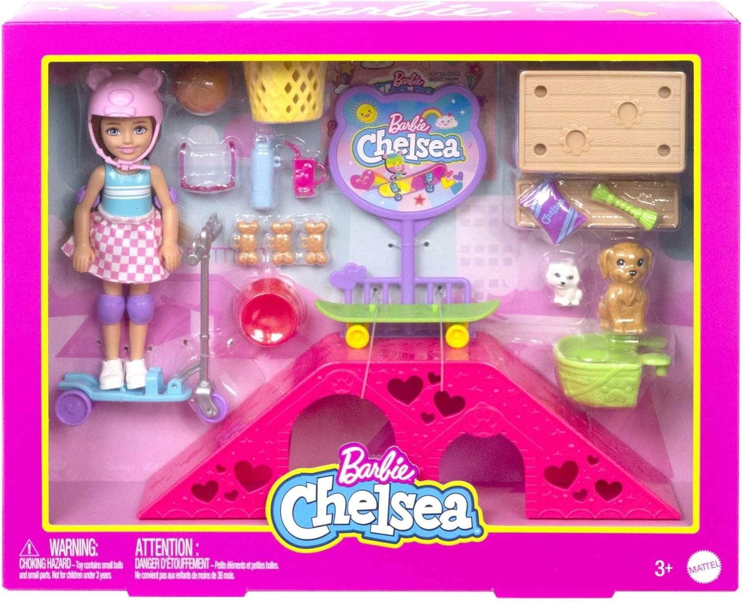 Barbie Chelsea Doll & Skate Park Playset with 2 Puppies, Skate Ramp (HJY35)