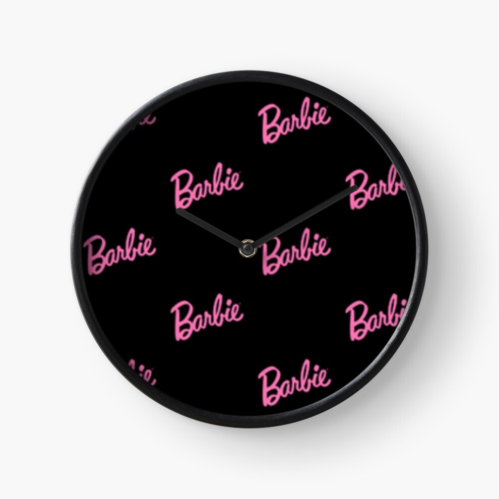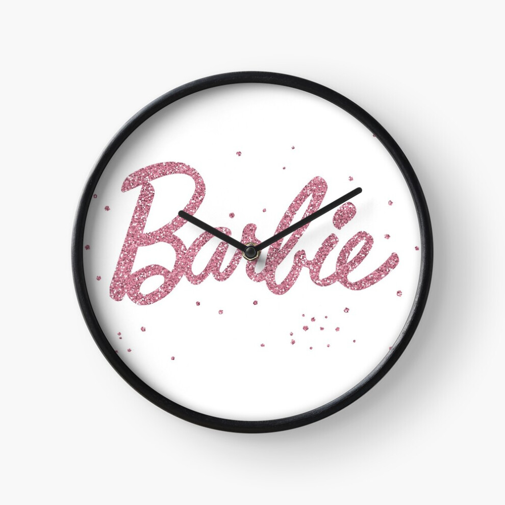 (Barbie with pink glitter on white=2497) Wall Clock 12 Inch Funny Mantel & Tabletop Art Decor for Home Bedroom Office