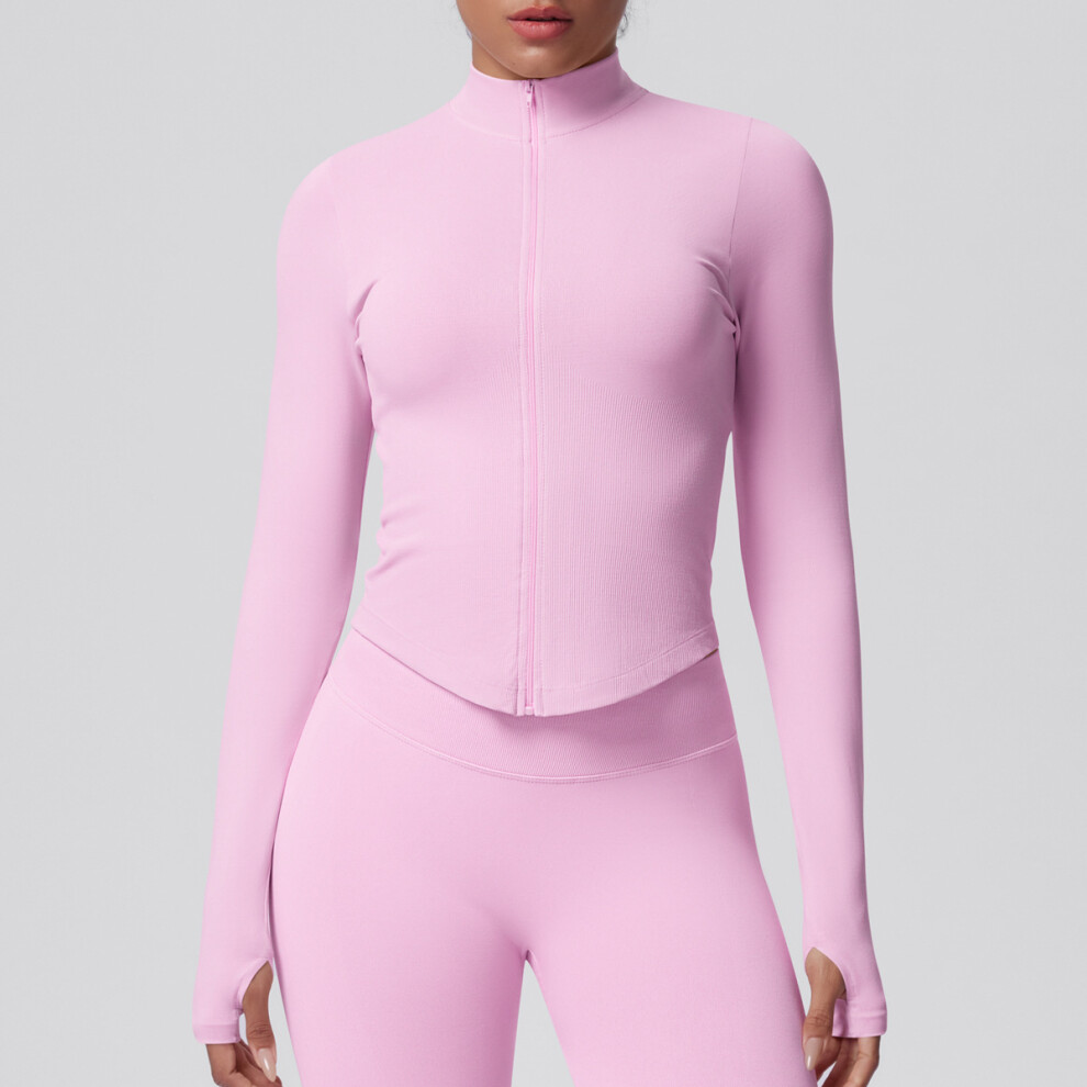 (6704 Jacket-Barbie Pink, L) Breathable stand-up collar zipper jacket sports running fitness yoga clothing tops for women