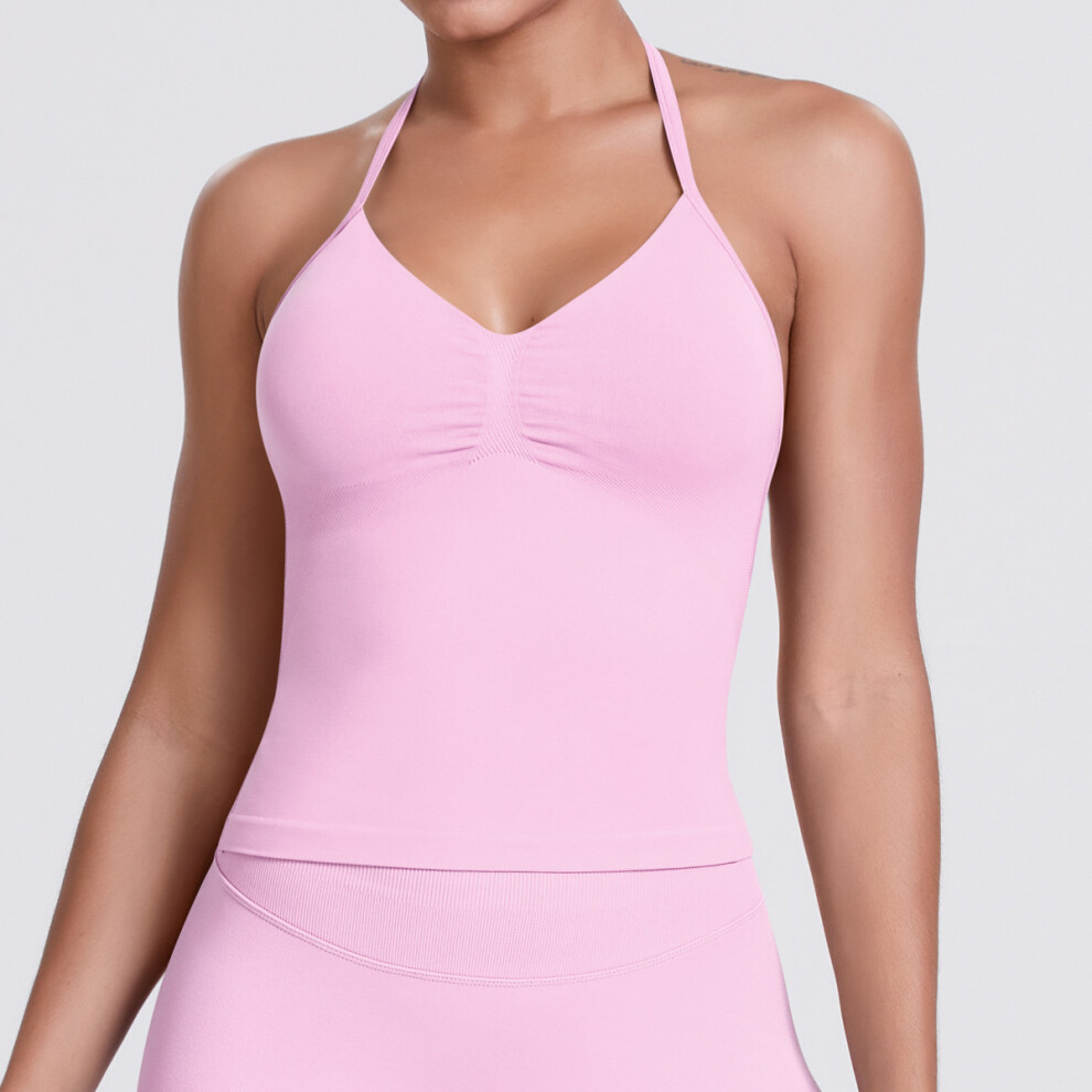 (6700 vest-Barbie pink, M) Vest sling running fitness sports vest yoga clothing tops for women