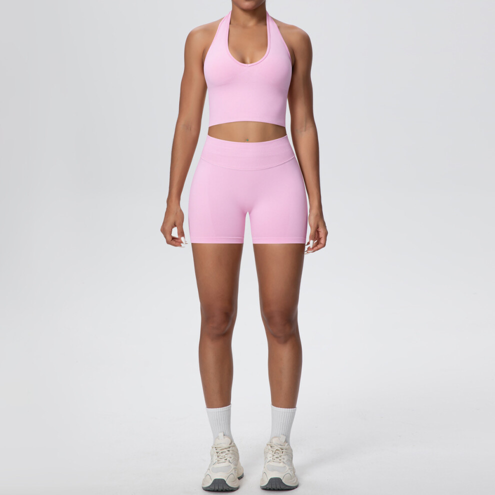 (6703 vest + 6688 shorts set - Barbie pink, XL) Yoga clothing set running sports fitness yoga clothing two-piece set for women