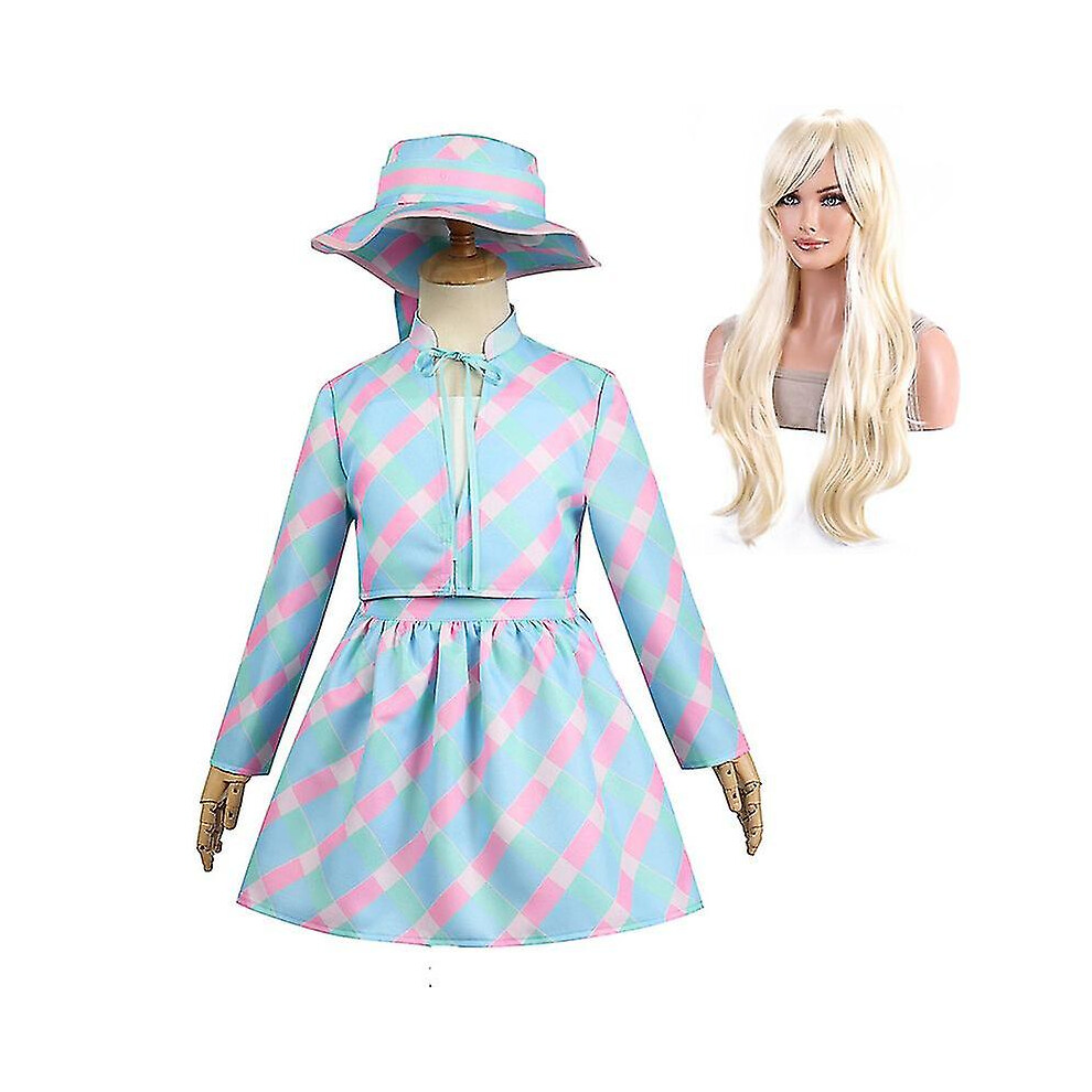 (Child Without wig, L) Movie Barbie Costume For Adult Child Blue Dress Halloween Fancy Dress Carnival Costume Full Set