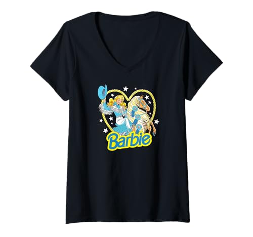 Womens Barbie - Retro Western Cowgirl With Horse And Heart V-Neck T-Shirt