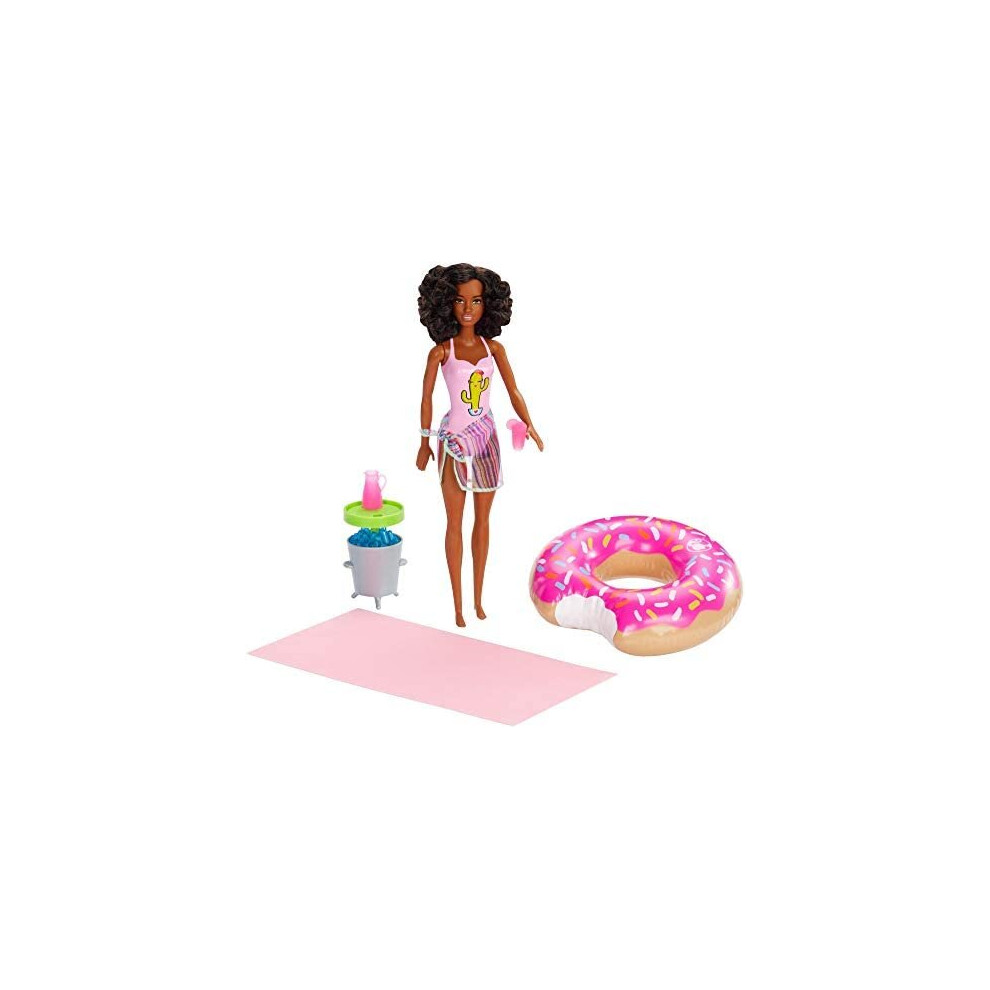 Barbie Doll and Pool Playset with Pink Slide Beverage Accessories and