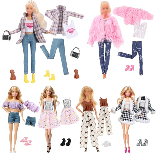 14 Pcs Doll Clothes Compatible with Barbie 11.5 Inch Girl Dolls Fashion Pack 6 Set Accessories Fashionable Coat Houndstooth Suit Evening 1 Tulle Skirt Casual Outfit 6 Shoes 1 Handbag 1 Dog