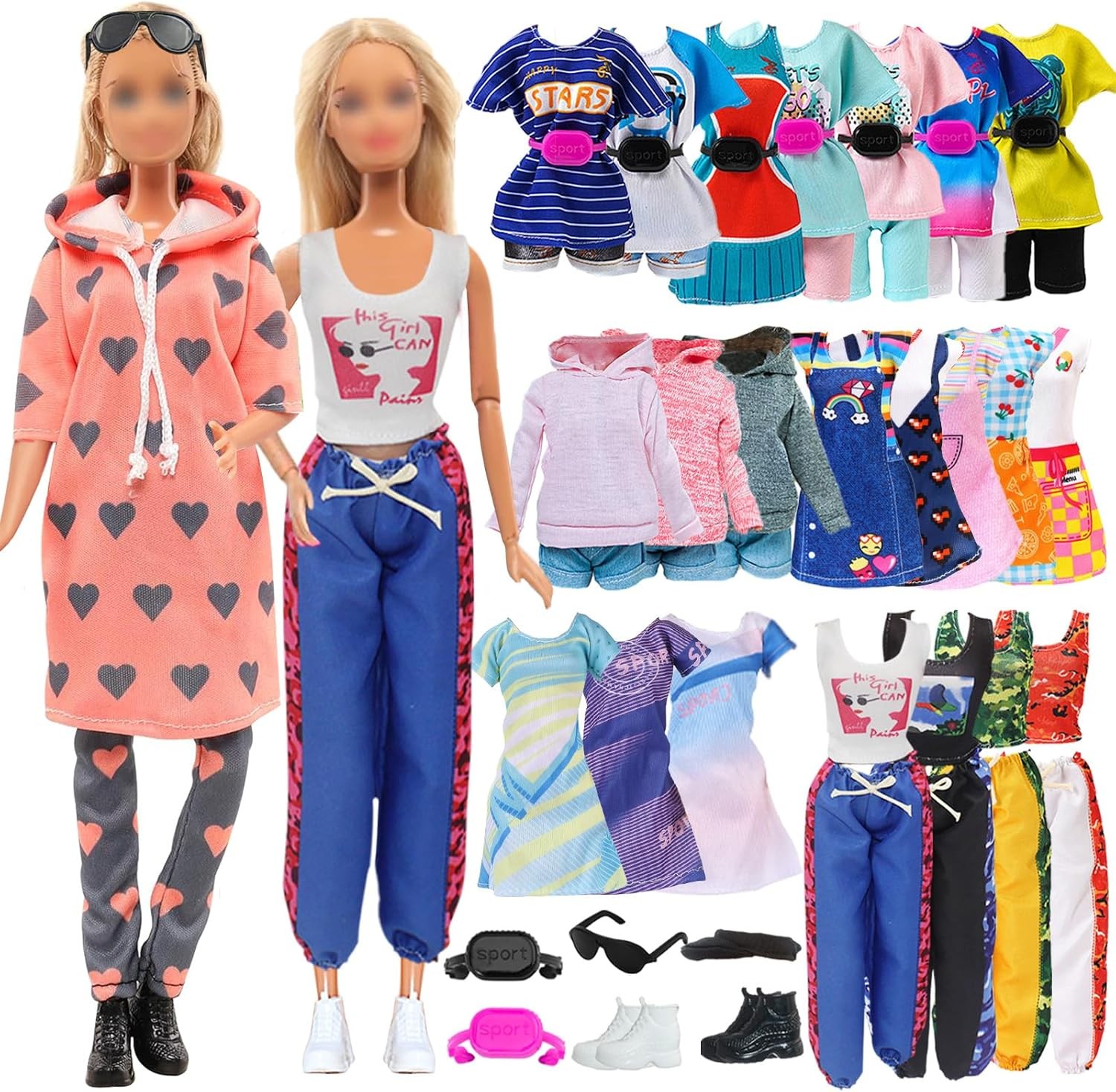 Doll Clothes and Accessories Compatible with Barbie Dolls, Including Fashion 6 Top 6 Pants 10 Hangers 6 Pair of Casual Shoes 6 Music Accessories 1 Cool Glass in Random for 11.5 inch Dolls