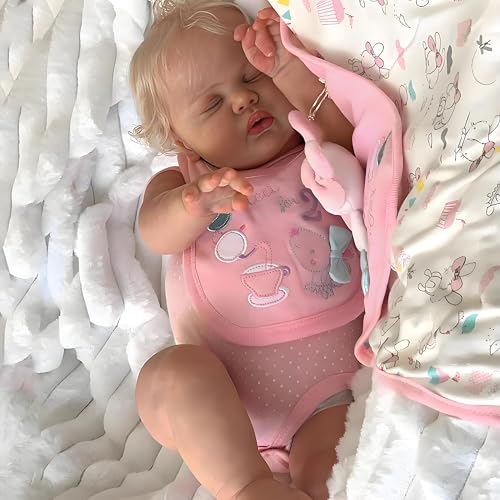 Zero pam Reborn Baby Dolls Realistic Girl Eyes Open with Blonde Hair, 18 Inch Soft Cloth Body Poseable Vinyl Limbs Newborn Baby Doll That Look Real Silicone Infant Toys for Kids Age 3+