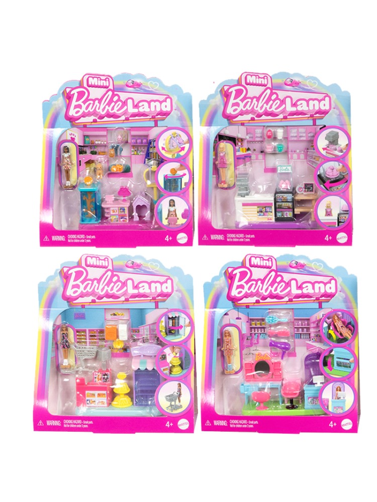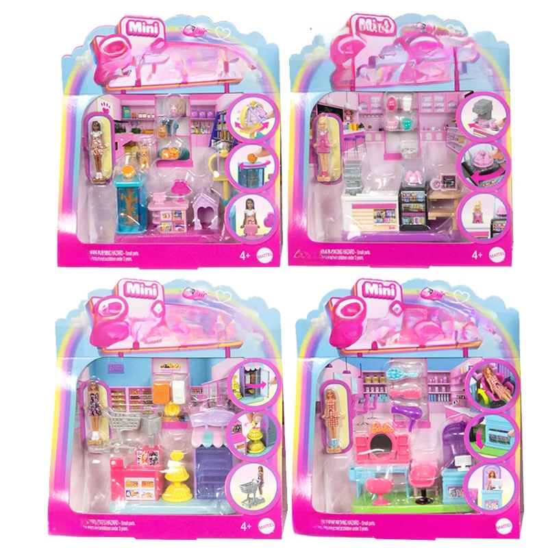 Original Barbie Mini Barbieland Doll House Hair Salon Pet Boutique Supermarket Bakery Toys for Girls Accessories Micro Furniture