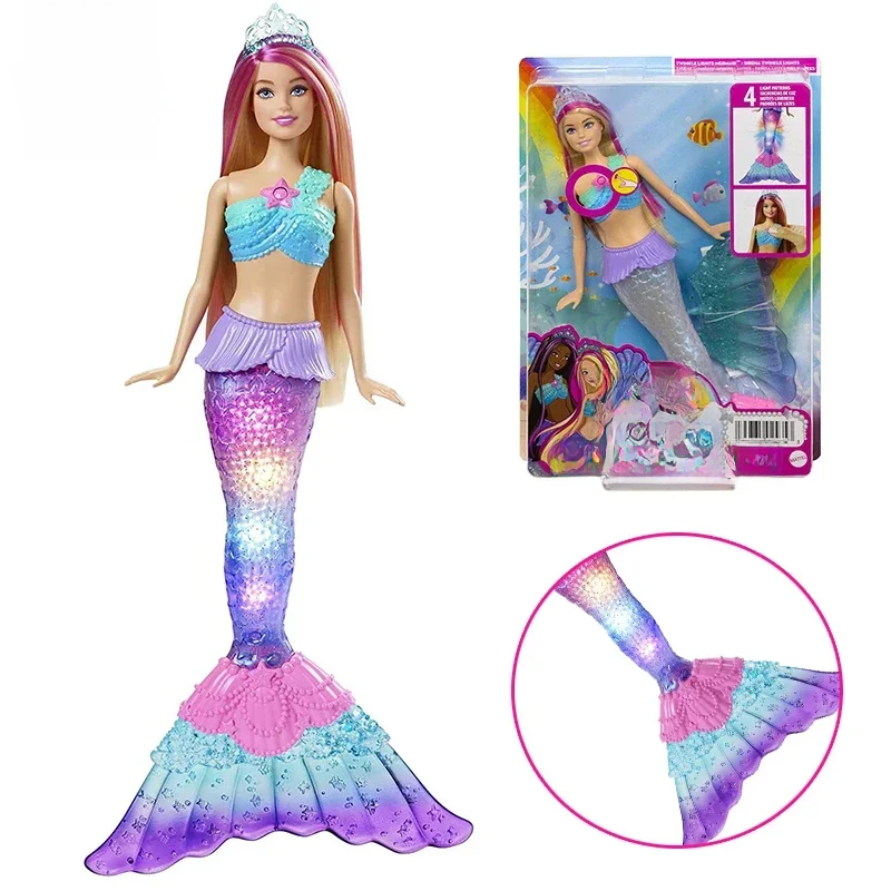 Original Mattel Barbie Dreamtopia Doll Mermaid Twinkle Light Princess with Accessories Toys for Girl Educational Props Kids Gift