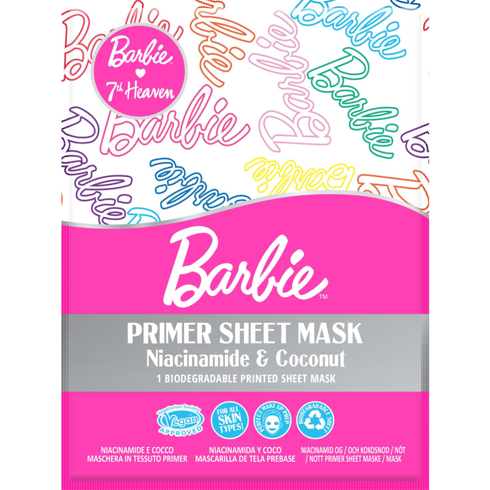 7th Heaven Barbie Primer Face Sheet Mask with Niacinamide & Coconut