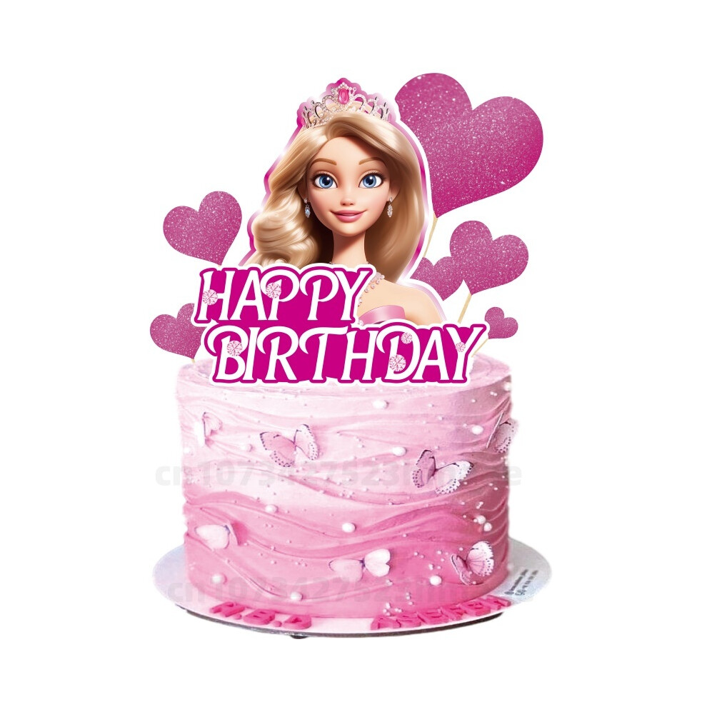 Glitter Hot Pink Girl Cake Topper For Barbie Set Glitter Doll Head Cupcake Toppers for Girls Women's Birthday Party Decorations