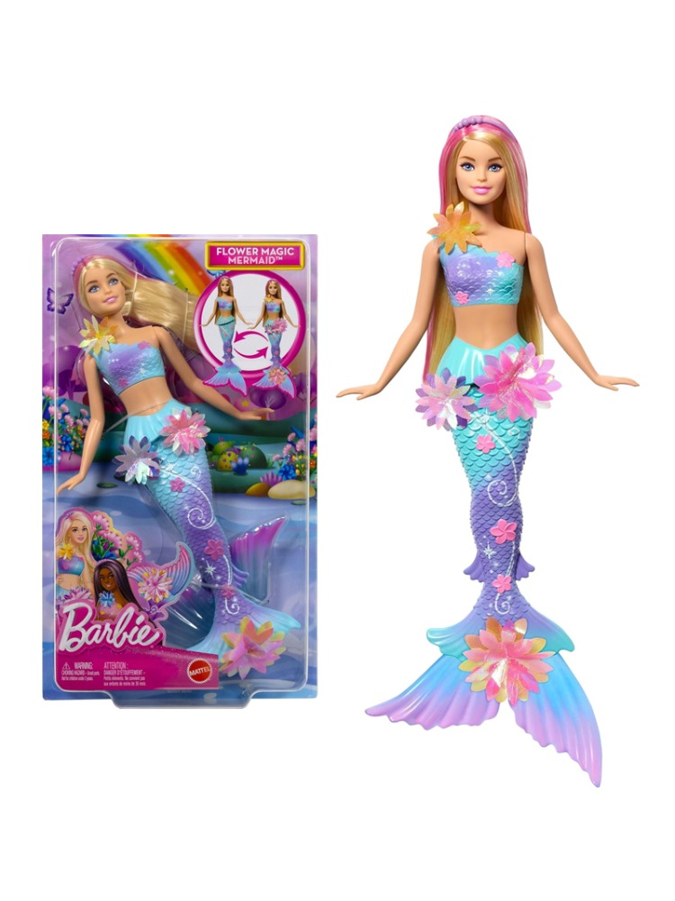Barbie Mermaid Toy Dolls with Surprise Magic Blooming Flowers Feature, Ombre Tails, Pearl Headband Accessory & Long Blonde Hair with Pink Highlights,