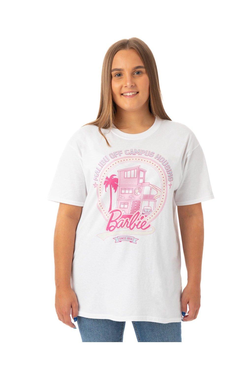 (XL, White) Barbie Womens/Ladies Malibu Off Campus Housing Short-Sleeved T-Shirt