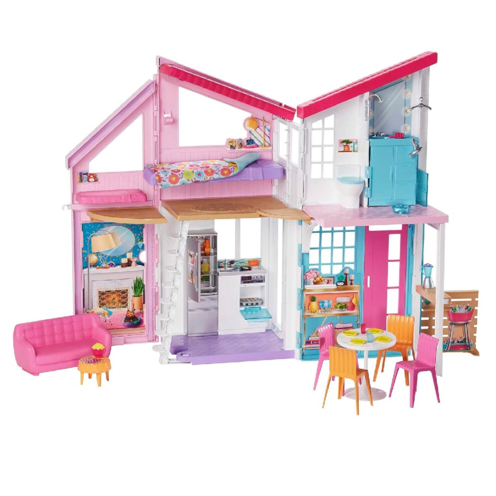 Barbie Malibu House Playset - 2-Storey House with 6 Transforming Rooms - 25+ Furniture, Patio Fence & Accessory Pieces - 2' Wide - Gift For Kids 3+