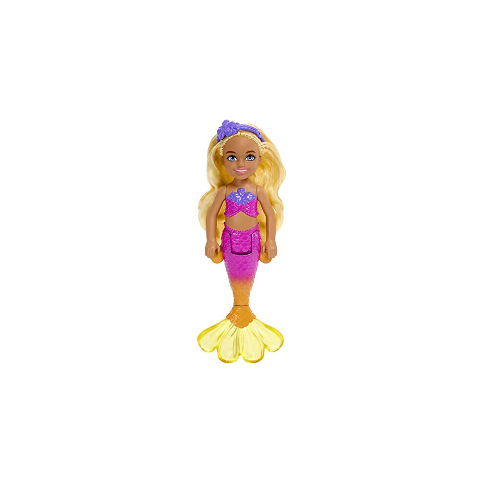 Barbie Dreamtopia Chelsea Mermaid Small Doll with Removable Hair Accessory, Wavy Blonde Hair & Ombre Tail, Bends at Waist