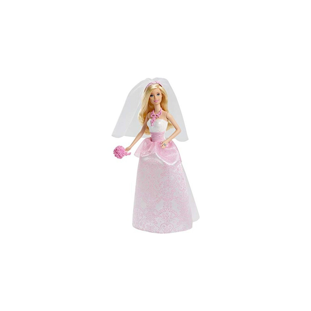 Barbie Bride Doll in White and Pink Dress with Veil and Bouquet