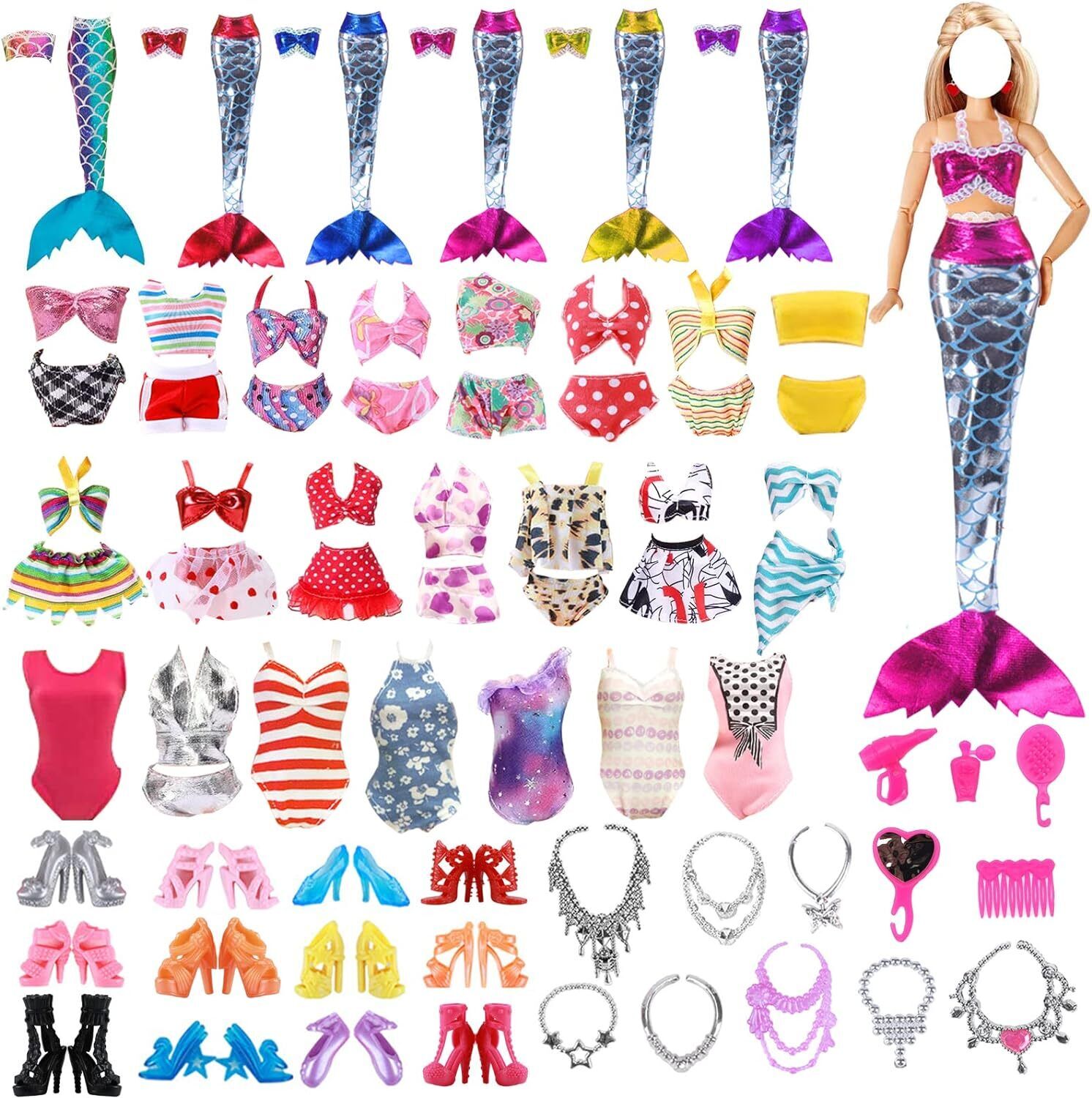 28 Doll Clotes and Accessories, 3 Mermaid Dresses Compatible with Barbie Doll 5
