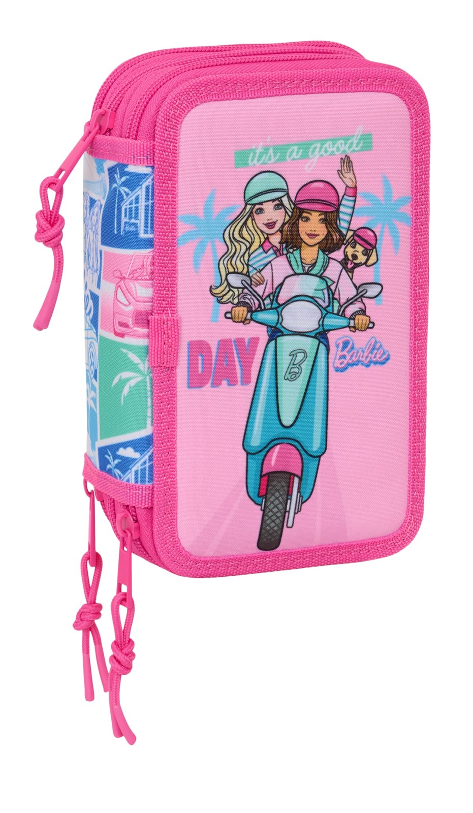 CARTOON Pencil Case 3 Zip Complete 44 Pieces Stationery Multi-Compartment Pens Pencils Colours Markers Giotto for School, Barbie, 19.5 x 12.5 x 7 cm, Pencil Cases