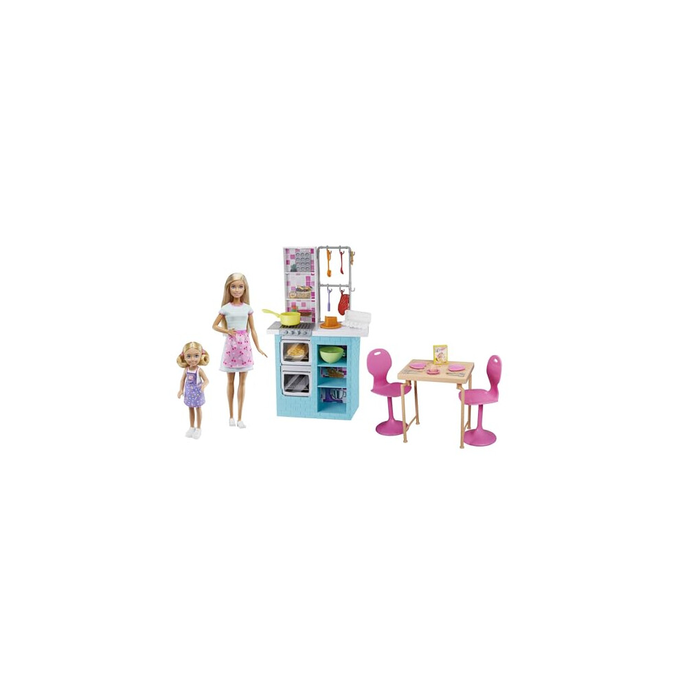 Sisters Baking Playset with Barbie Doll & Chelsea Doll, Kitchen Pieces, Dining Set & 15+ Accessories, Gift for 3 to 7 Year Olds, HBX03