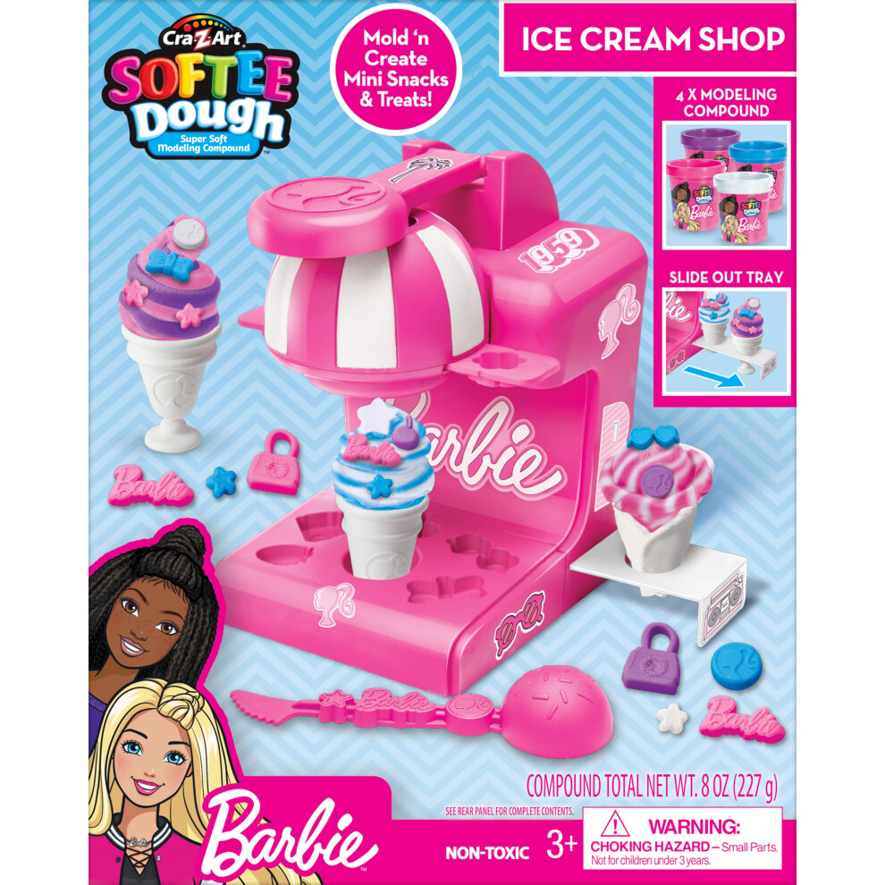 Barbie Softee Dough Ice Cream Playset with Ice Cream Maker 4 Colors Modeling Compound Press & Mold Mini Treats Ages 3 and Up