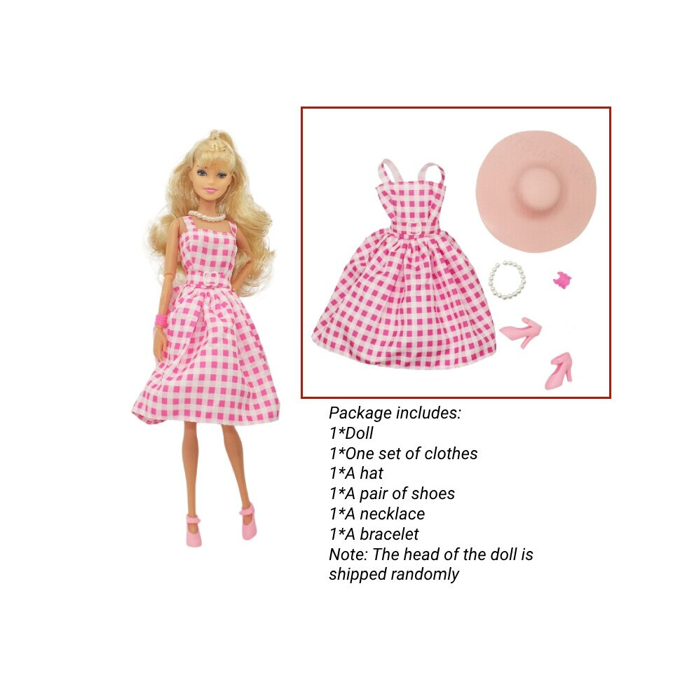 (Barbie Pink Dress (with Necklace), L) Barbie Ken live-action movie cosplay costume complete set