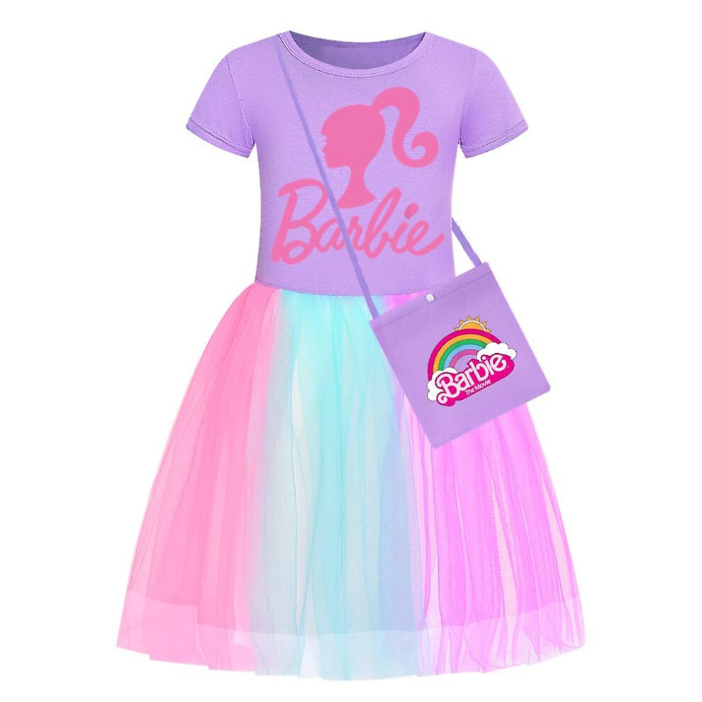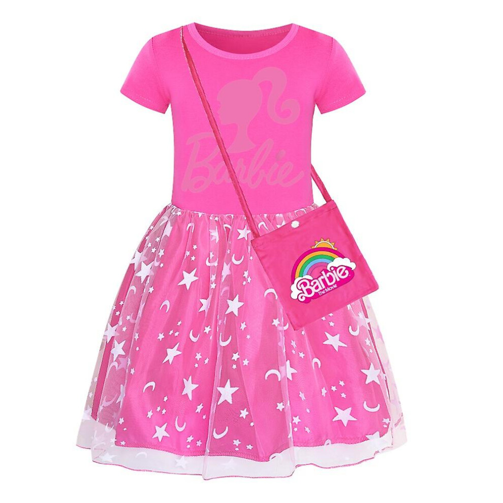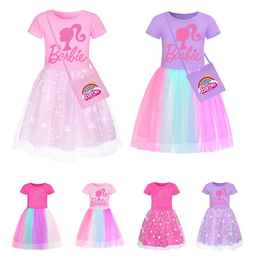 (A, 130) Barbie-pink Girls' Dress Star Rainbow Rainbow Lace Skirt And Crossbody Bag Set