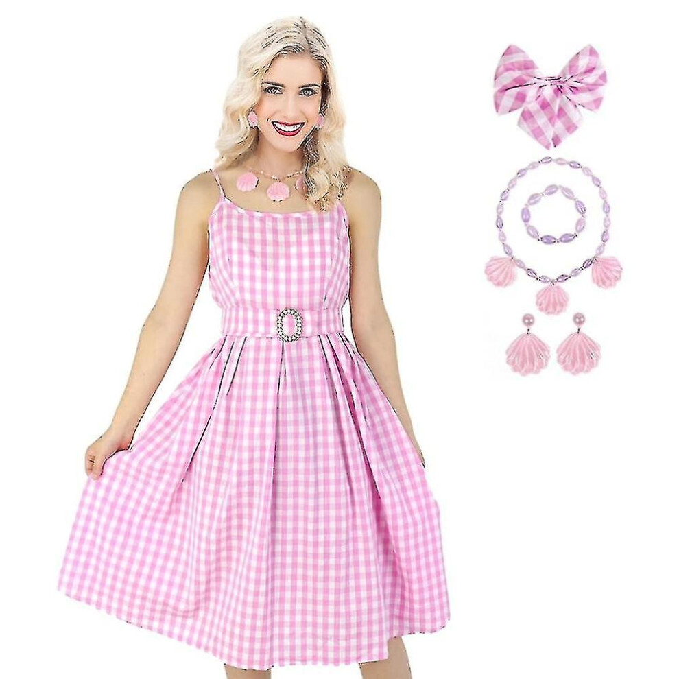 (Barbie Pink Dress (with Necklace), L) Barbie Ken live-action movie cosplay costume complete set