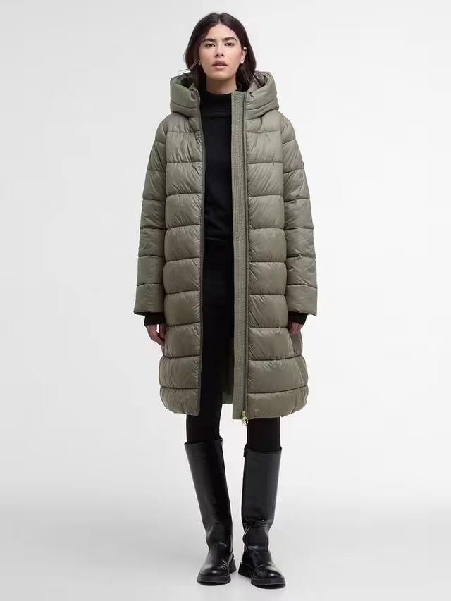 NEW Barbour International Women's Olivios Longline Puffer Jacket - Khaki - UK 16