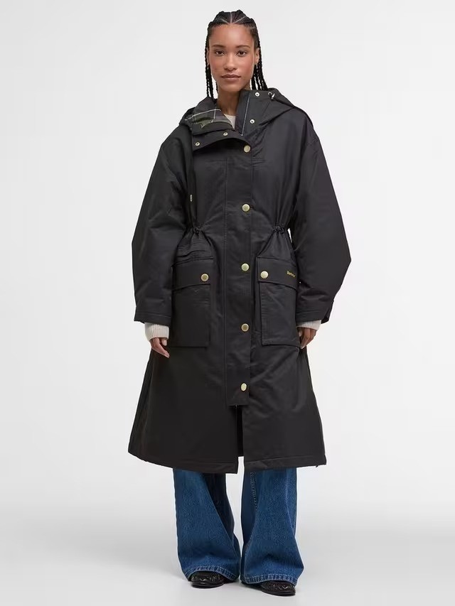 NEW Barbour Women's Reighton Cotton Waxed Coat Jacket - Black Classic - UK 18