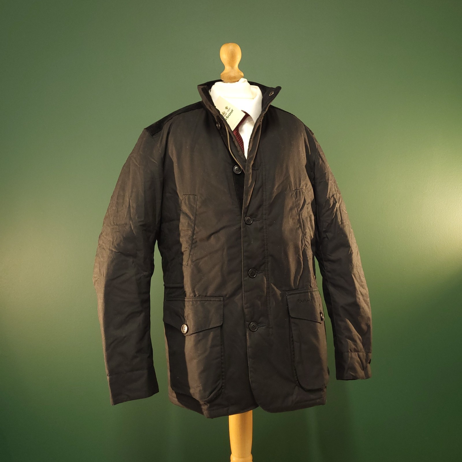Barbour Kyle Wax Jacket Men's Small Black Quilted Lined Outdoor Snap Inside Zip