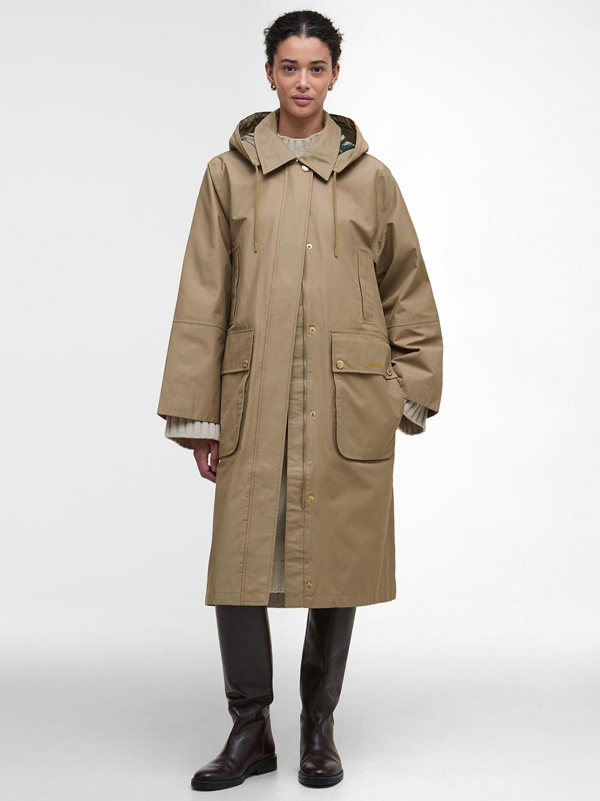 NEW Barbour Maude Waterproof Long Cotton Blend Jacket - Military Brown - UK 14