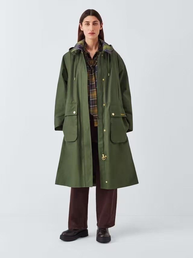 NEW Barbour Women's Crosby Hooded Long Waterproof Jacket - Olive Green - UK 8