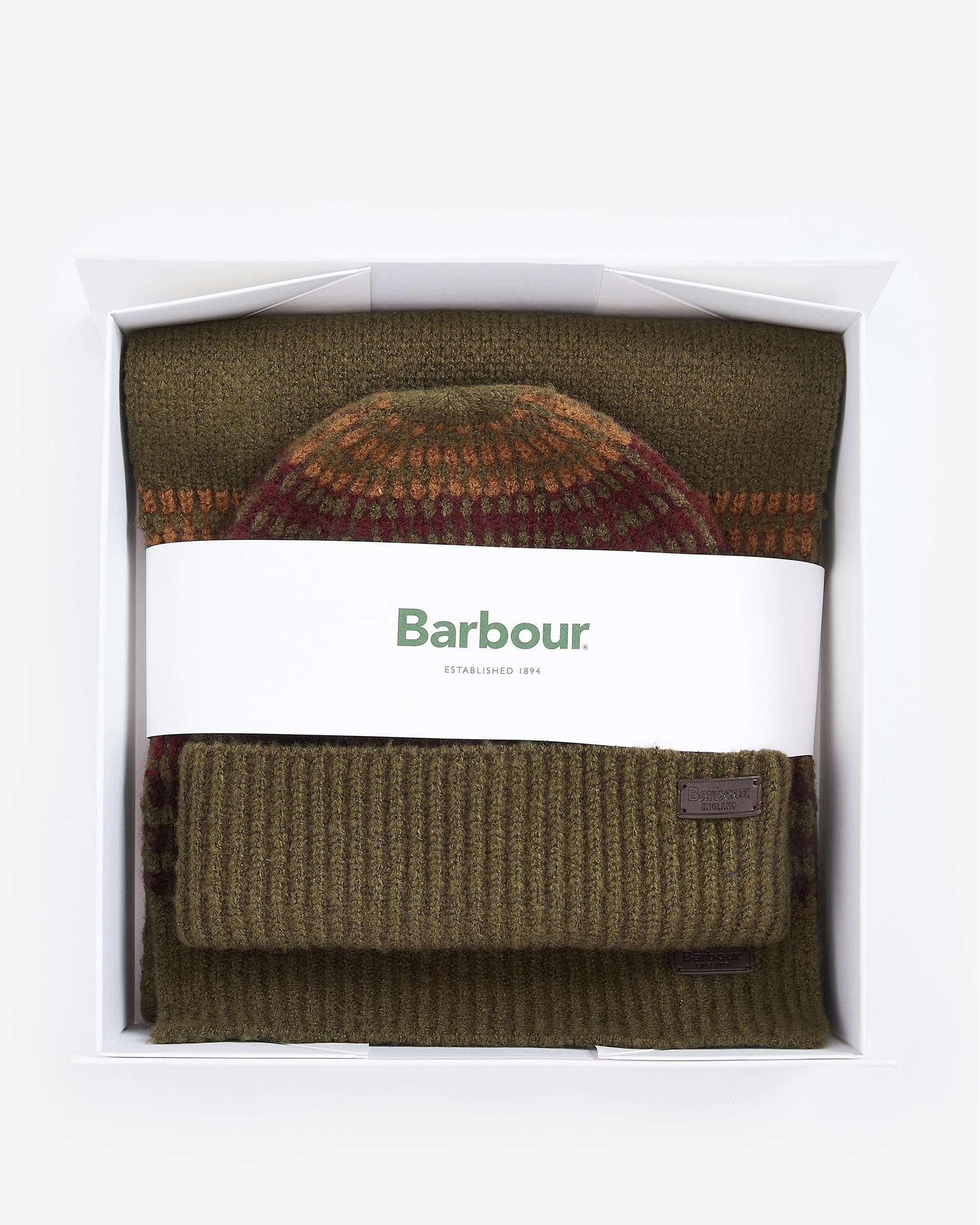 Barbour Men's Crimdon Beanie & Scarf Gift Set Olive Twist