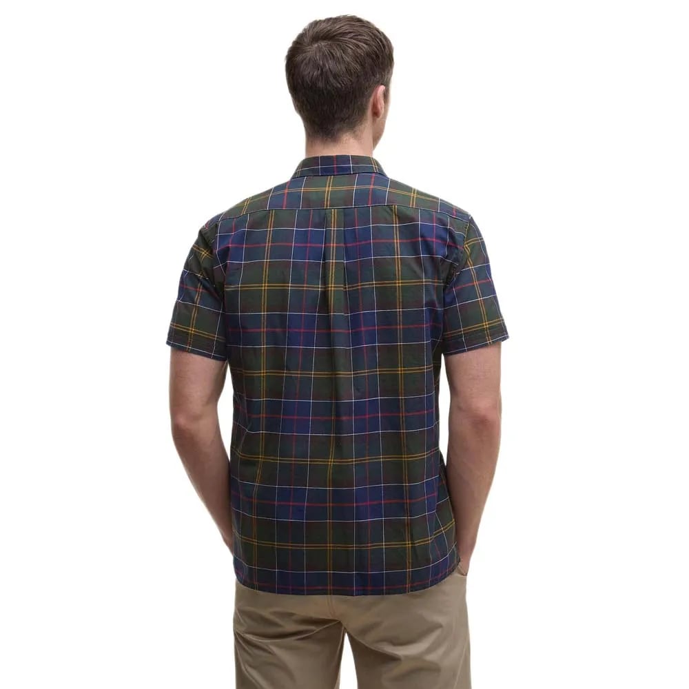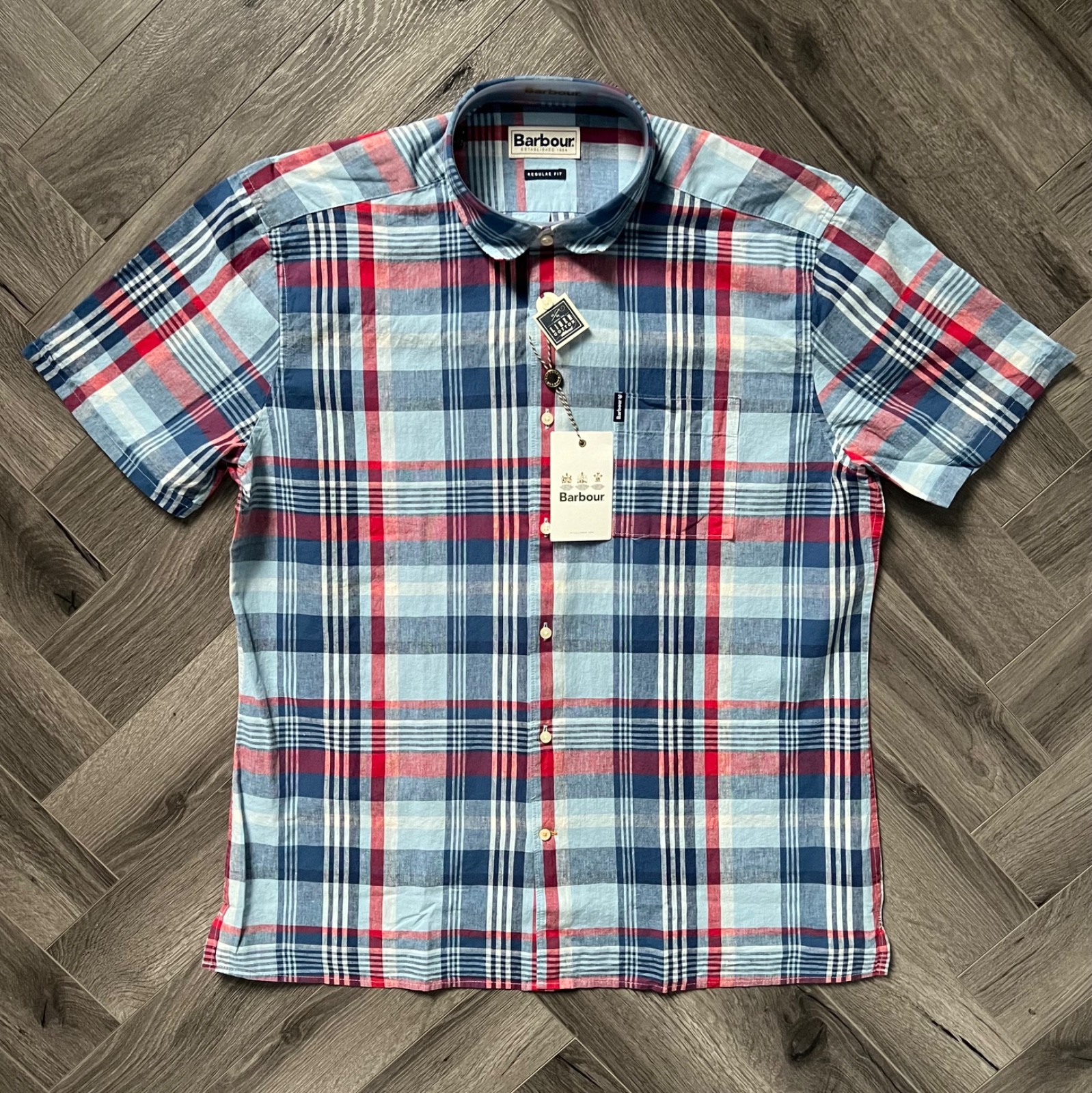 Barbour Linen Mix Short Sleeve Check Summer Shirt Blue Regular Fit Size Large
