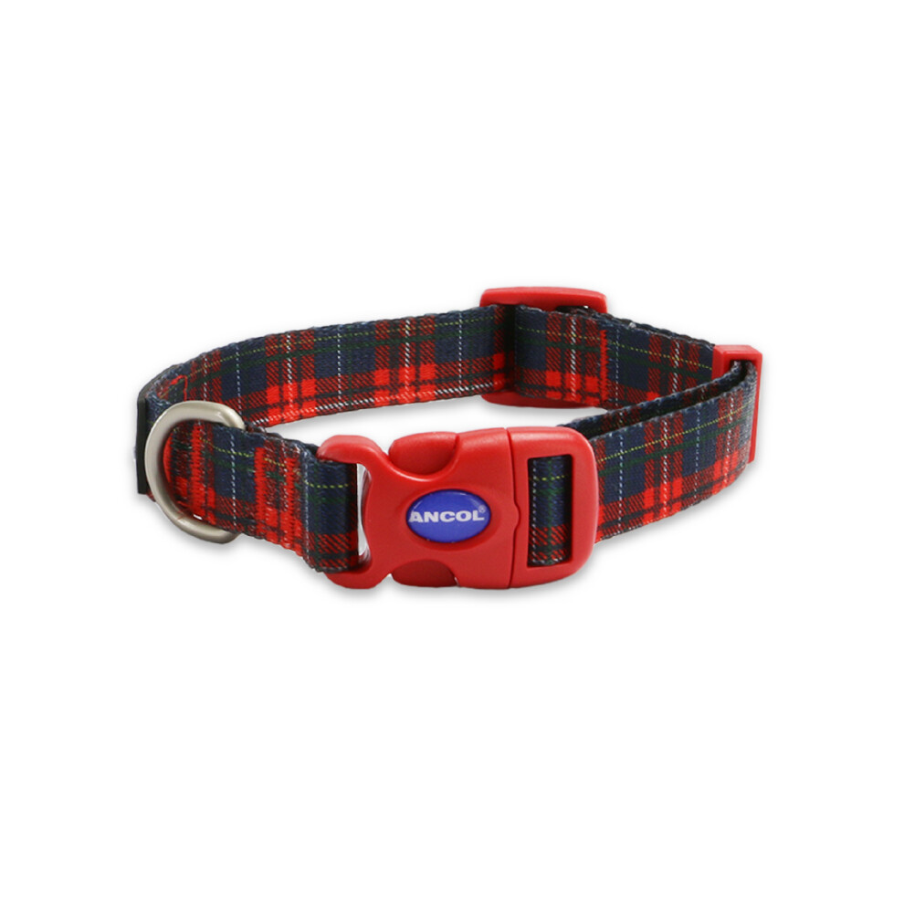 Ancol Tartan Patterned Round Dog Collar Secure Fit Soft Comfortable Stylish Pet Puppy Leash Large