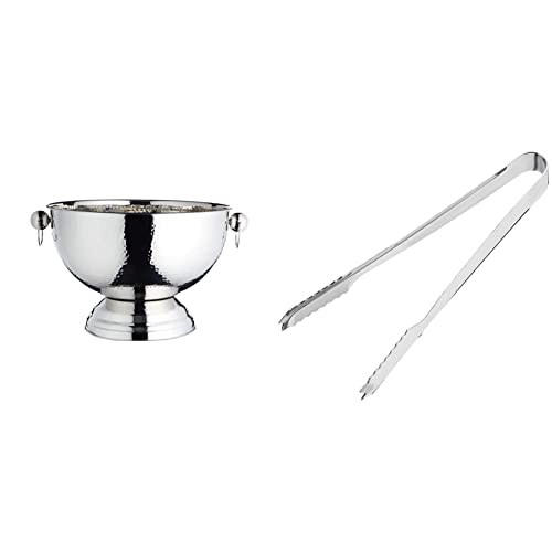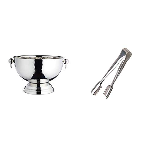 BarCraft Hammered Stainless Steel Champagne Bucket, Beer, Drinks and Wine Cooler, 37x25cm, Gift Tagged & Stainless Steel Ice Tongs 7inch | Bar Ice Tongs, Ice Bucket Tongs