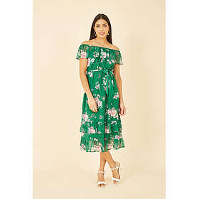 Yumi Green Floral Bardot Midi Dress With Frill Hem