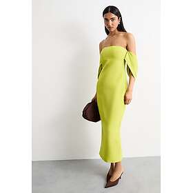 Lisa Tan Premium Pleat Detail Bardot Jacquard Pencil Dress