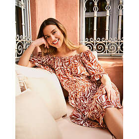 Blue Vanilla Coconut Button Shirred Waist Bardot Midi Dress