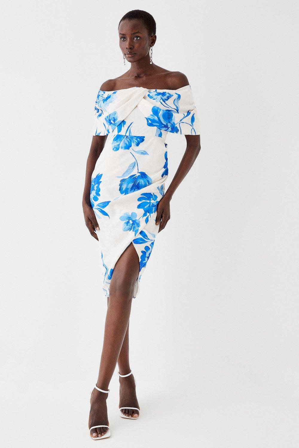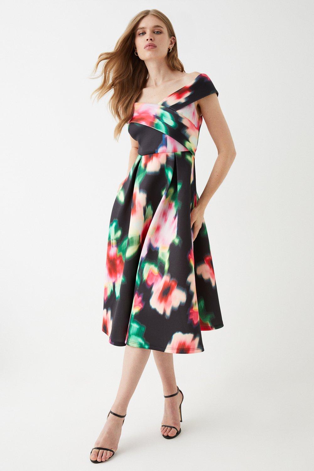 Scuba Bardot Printed Midi Dress