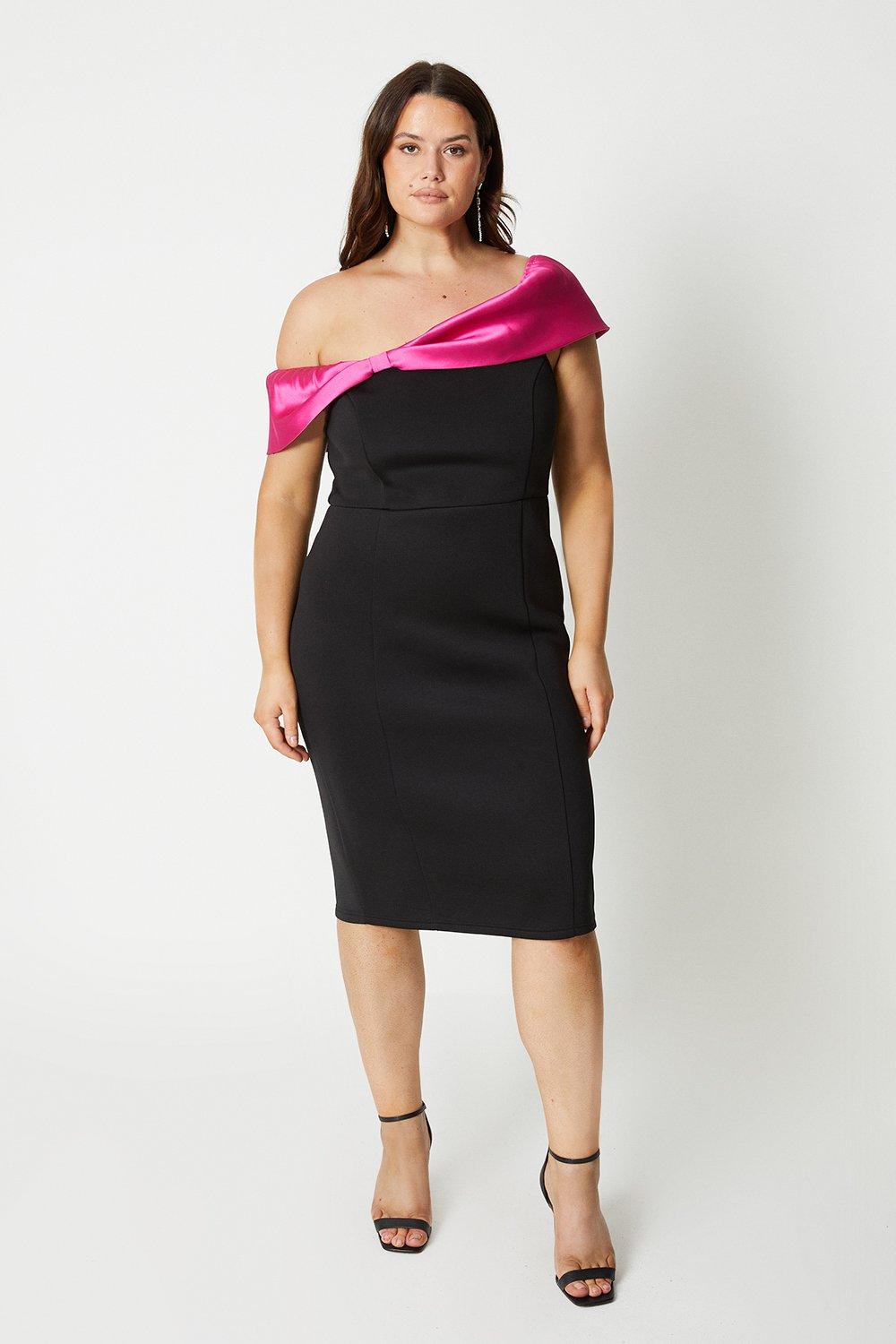 Plus Size Bow Detail Bardot Scuba Pencil Dress
