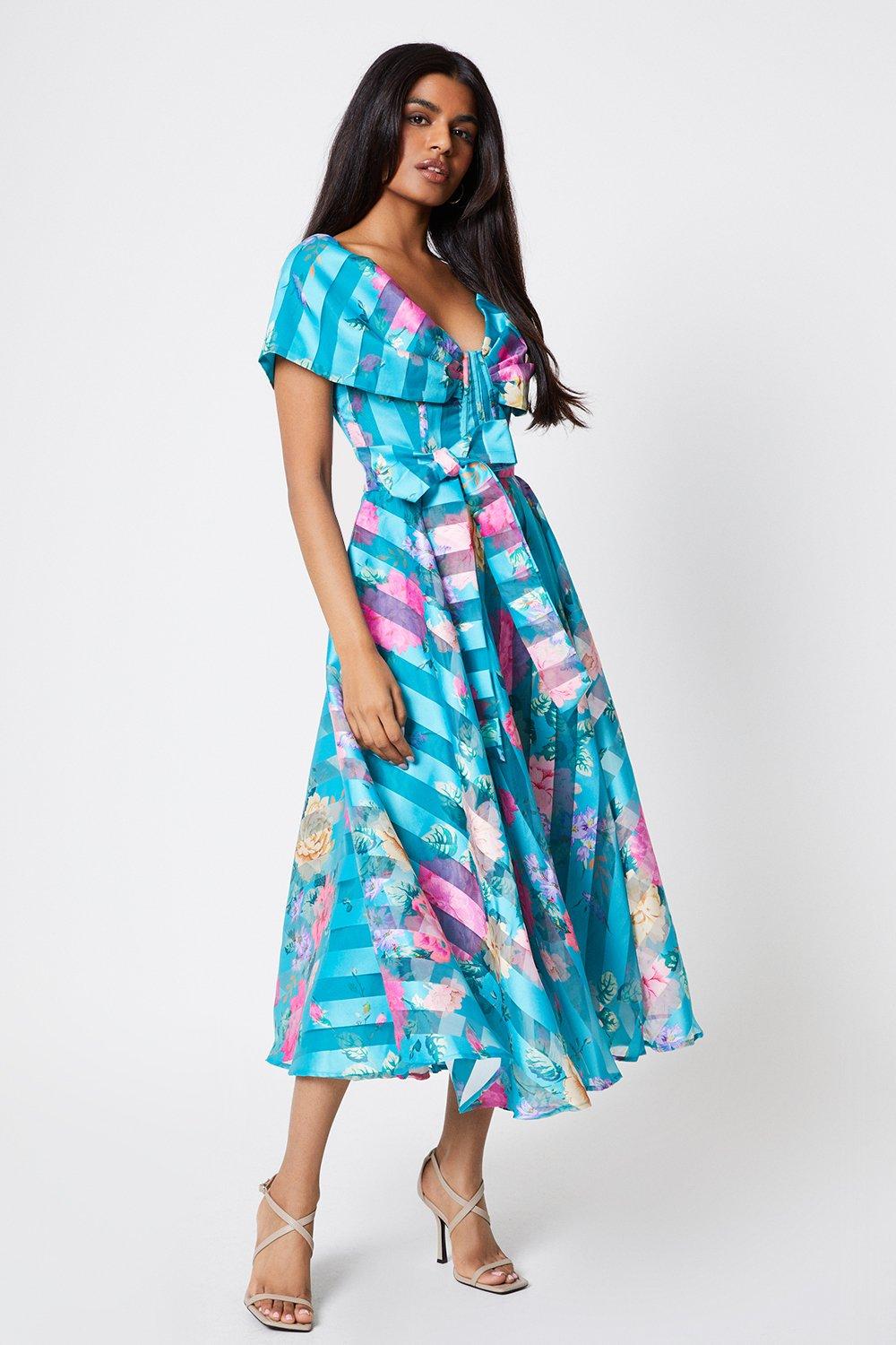 Petite Bardot Midi Dress In Stripe Organza