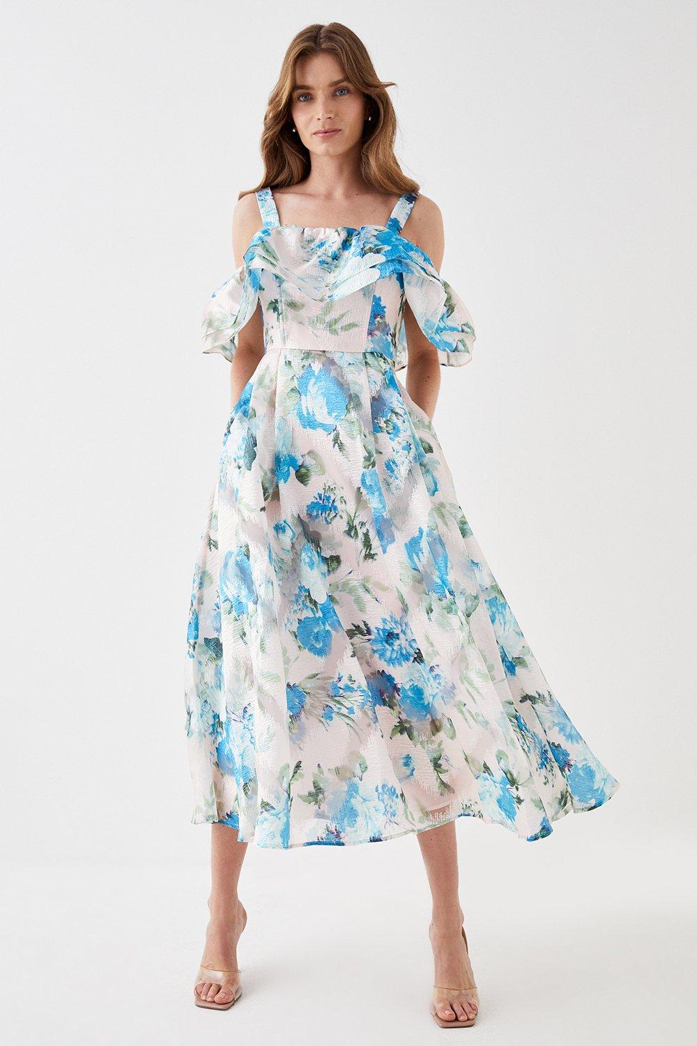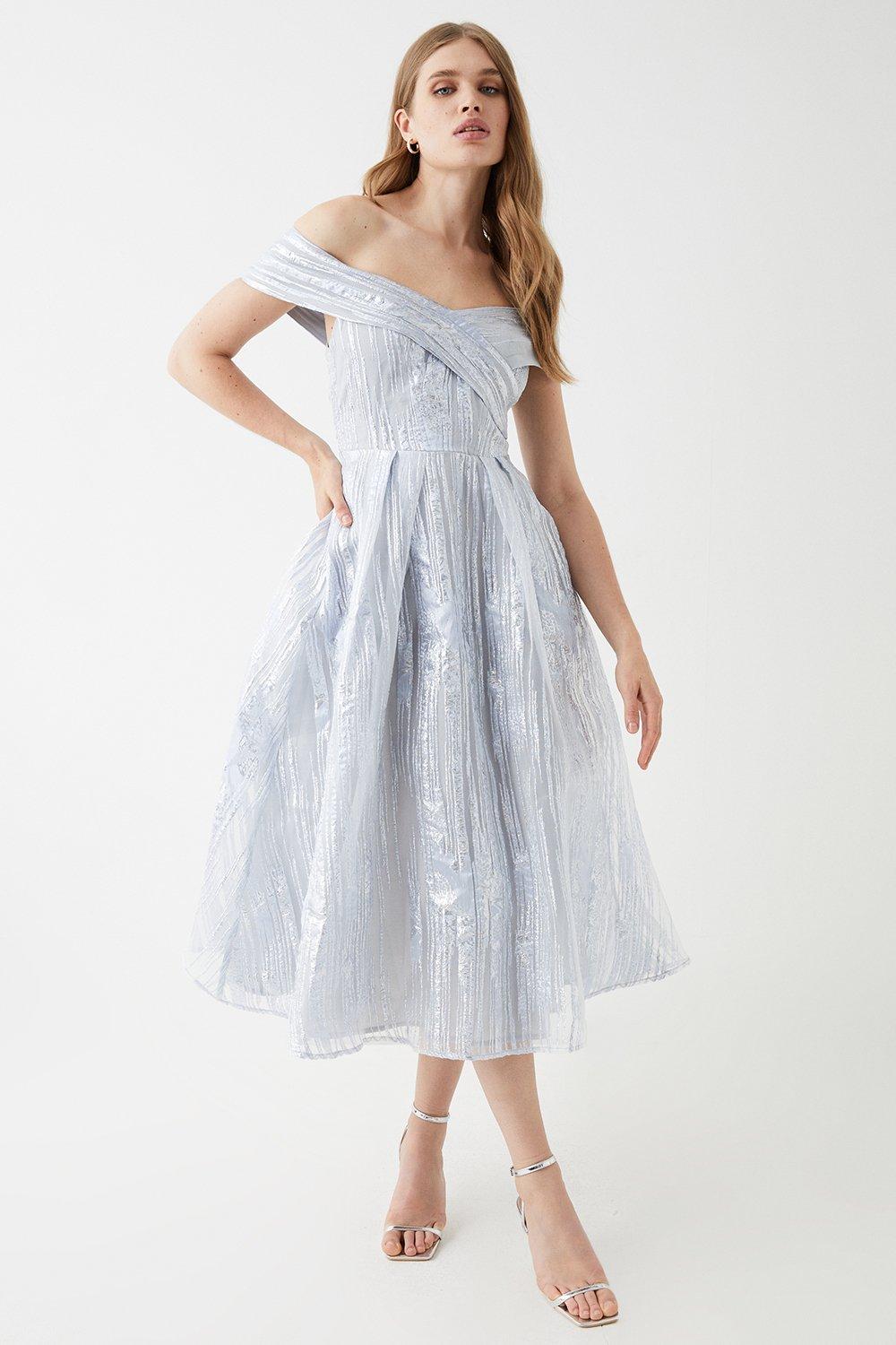 Organza Jacquard Bardot Midi Dress