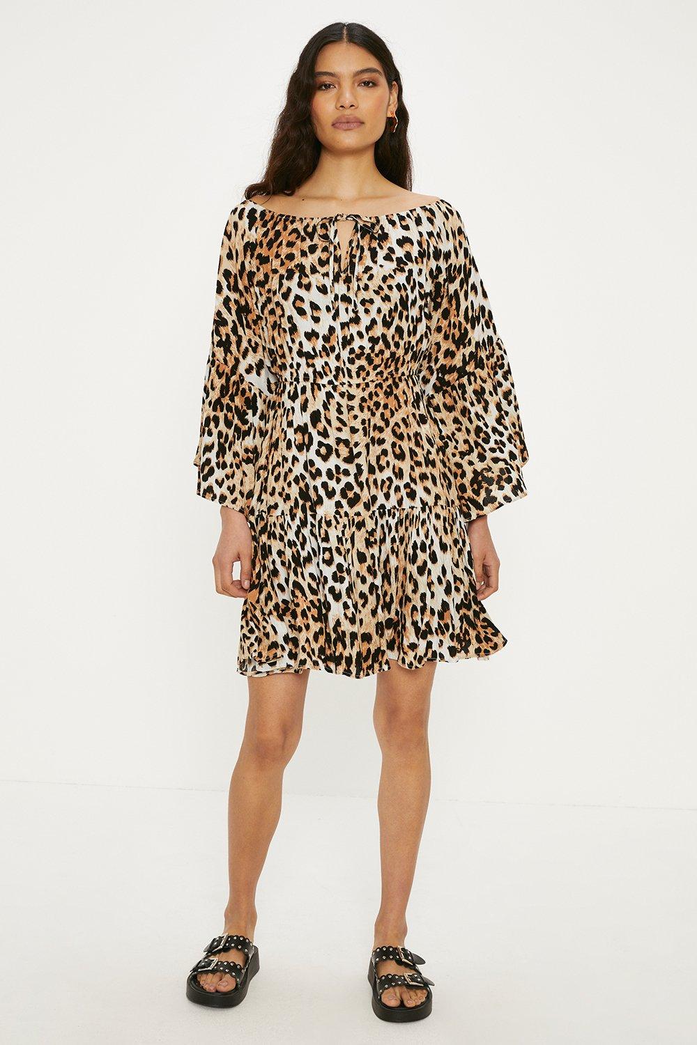 Animal Print Crinkle Bardot Dress