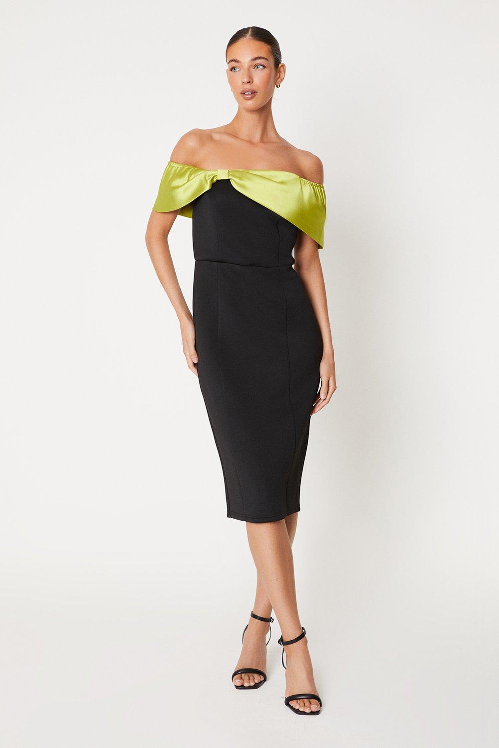 Bow Detail Bardot Scuba Pencil Dress