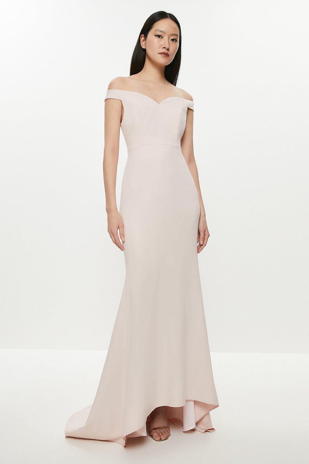 Petite Sculpting Crepe Bardot Fishtail Bridesmaids Dress