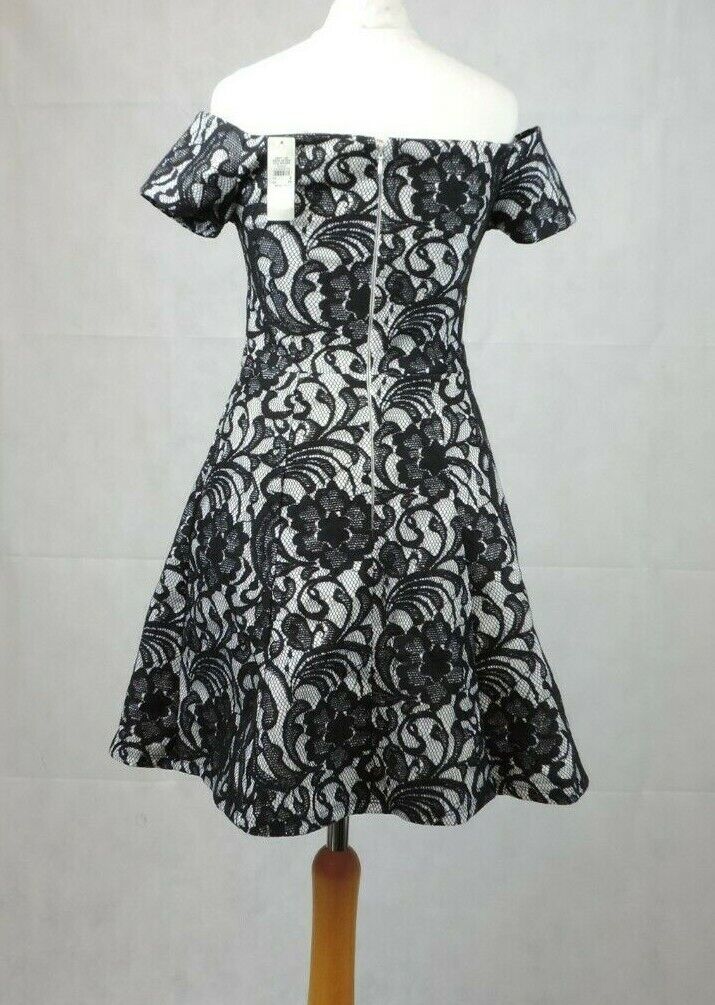River Island Black Lace Bardot Skater Dress Size 8 uk rrp £57 CR097 CC 02