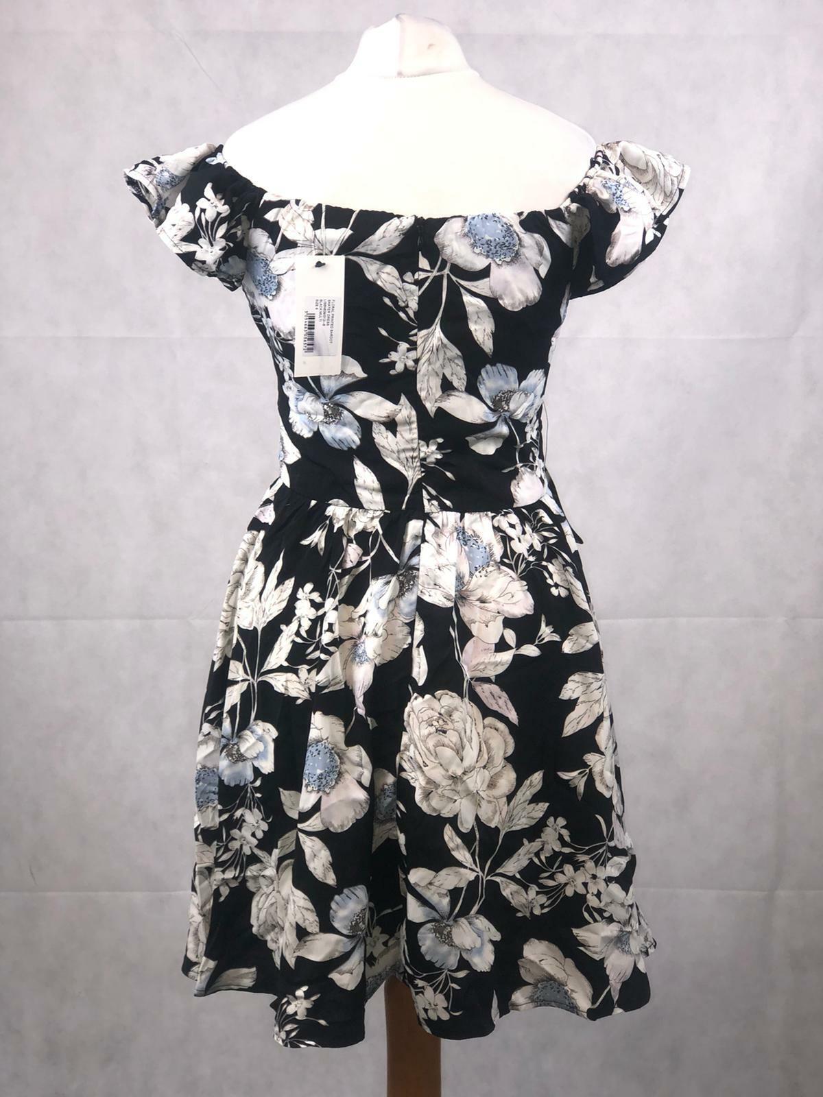 Rare London Floral Printed Bardot Skater Dress UK 8 TD017 KK 12