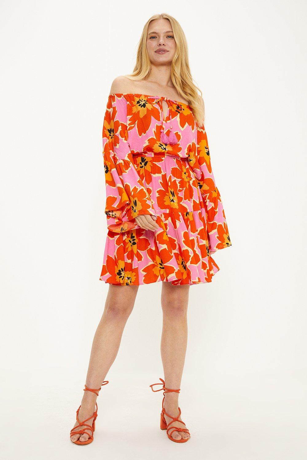 Bright Floral Bardot Dress